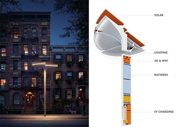在紐約的一家公司Totem設(shè)計(jì)了一款新型城市路燈,采用太陽能電池和能量?jī)?chǔ)存電池,可以提供WiFi、4G網(wǎng)絡(luò)。又使用新能源,還能提供網(wǎng)絡(luò),這款產(chǎn)品融合了目前幾大比較火熱的行業(yè),并且切得點(diǎn)還是比較靠譜的,相比于現(xiàn)在很多的產(chǎn)品在實(shí)用價(jià)值上提高了很多。