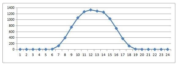 下圖1為該地區(qū)逐時(shí)出力的年平均值,即對365天的24小時(shí)逐時(shí)出力求平均。