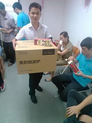 此次活動(dòng)獎(jiǎng)品極為豐富,也因此增加了員工參與活動(dòng)的積極性,活動(dòng)一共分為四個(gè)環(huán)節(jié),每個(gè)環(huán)節(jié)環(huán)環(huán)相扣。第一環(huán)節(jié)以搶凳子游戲來(lái)角逐博餅參賽資格,搶凳子獲勝人員將進(jìn)入此次活動(dòng)的中心——博餅。參賽人員圍繞桌子站著進(jìn)行博餅。博餅現(xiàn)場(chǎng)異常熱鬧激烈,各個(gè)都爭(zhēng)取自己能博個(gè)好兆頭好運(yùn)氣贏得心儀的禮品。此次比賽進(jìn)行了40分鐘。最后產(chǎn)生了4個(gè)金狀元進(jìn)入了下一輪的金壯元PK賽。金狀元PK賽采取的是知識(shí)問(wèn)答題,業(yè)務(wù)部小董獲得最高分成為了 “狀元王中王“并獲得了一份大禮——滾筒洗衣機(jī)一臺(tái)。